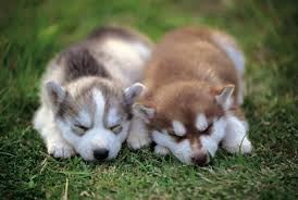 A oto zdjęcie szczeniaków opierających się o kłodę na wiosnę, tak sądzę :) Dwa małe Huski śpiące